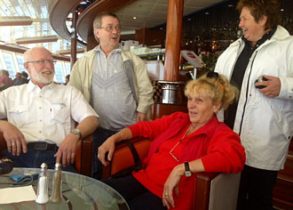 In Oslo gibt es Shantychor-Ständchen an Deck... ... und in der Colorline-Halle in Kiel Mit einem Ständchen des Shantychors Hemmoor und einem Auftritt von Fährwirt "Löpel-Hans" Bünning (Oberndorf) starteten am Mittwoch 50 Freunde der Deutschen Fährstraße Kiel zu einer erlebnisreichen dreitägigen Oslo-Fahrt mit dem Kreuzfährschiff "Color Magic". Blick auf den Oslo-Fjord... ... aus der Observation Lounge... ... und in die haushohe Mall des Schiffes Ein größerer Gegensatz ist kaum denkbar: zu Beginn der Festdekade der Besuch bei den alten Prahmfähren auf der Oste, nun die gigantischen Autofähren in Kiel... Ostefreunde beim abendlichen Umtrunk... ... in einem der Pubs an Bord... ... bei Livemusik in der Obvervation Lounge... ... und am "Oste"-Imbiss im Osloer Hafen