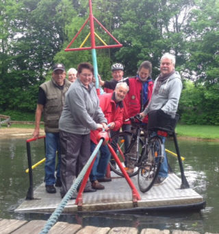 Brobergen: Goldhecht auf der Tortentheke Während das Open-Air-Konzert der Big Band der "Musikschule an der Oste", das auf der Schwebefähre geplant war, wegen des nachmittags einsetzenden Regens kurzfristig abgesagt werden musste, herrschte in derFährgastronomie in Gräpel und Brobergen den ganzen Tag über Hochbetrieb. An der Fähre Brobergen, dessen Betreiberverein unlängst mit demOstekulturpreis Goldener Hecht ausgezeichnet worden ist, trafen Gäste nicht nur per Motorrad, Auto und Rad, sondern auch per Planwagen ein. Volles Haus beim Broberger Fährverein Trotz des weiterhin wechselhaften Wetters freuen sich nun rund 50 Ostefreunde auf die für Sonntag angesetzte (ausgebuchte) Bus-, Schiffs- und Wandertour mitAlbertus Lemke. Osteland-Tourenleiter Lemke in Brobergen Das Jubiläumsprogramm in der Lokalpresse Der ADFC Stade offeriert nächste Woche eine weitere "Fährrad"-Tour an der Oste. Eine Serie von fünf Fahrrad-Staffeltouren für jedermann begint am Montag um 13 Uhr in Bremervörde - Einzelheiten siehe www.2014.oste.de.