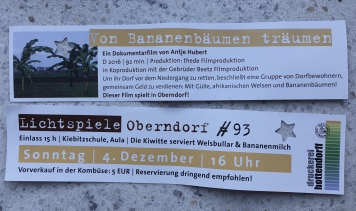 1. 12. 2016. Ausverkauft. Findigen Oberndorfern ist es gelungen, den im Dorf gedrehten Film "Von Bananenbäumen träumen" schon vor dem Kinostart für eine Sondervorführung am 4. Dezember auszuleihen. Die Karten sind komplett ausverkauft. > GOLDENES NETZ OSTE