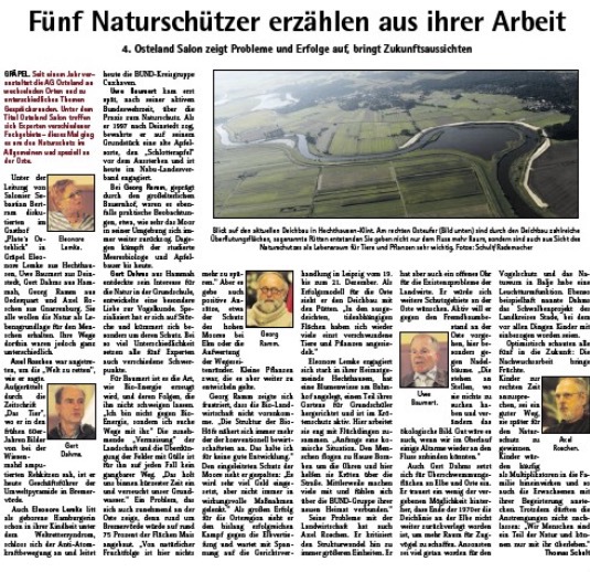 1. 12. 2016. Starkes Echo. Der von Sebastian Bertram moderierte "Osteland-Salon" ist die jüngste Veranstaltungsreihe der AG Osteland. Ostefähren, Ostejugend, Ostekrimis - das waren die ersten Themen. Im 4. Erzähl-Salon berichteten fünf prominente Naturschützer über ihren Kampf für die Natur im Osteland. Auch dieser Abend hat ein starkes Medienecho in den Oste-Landkreisen gefunden. Ein ausführlicher Bericht von Thomas Schult im Hadler Kurier steht hier zum Download bereit. > GRÜNES NETZ