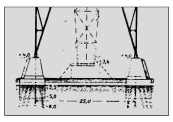 1. 1. 2018. Mit dieser Bauzeichnung aus dem Jahr 1908 illustriert haben wir vor 10 Jahren auf unserer Welt-Schwebefähren-Website einen Bericht mit der Überschrift „Die vier Fundamentkerne müssen verpreßt werden“. Erst jetzt, ein Jahrzehnt später, sind die schon damals überfälligen Arbeiten in Angriff genommen worden, zu mittlerweile viel höheren Kosten. > SCHWEBEFÄHREN