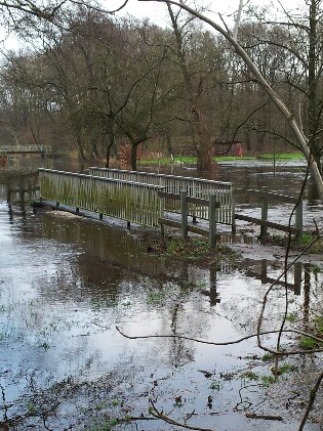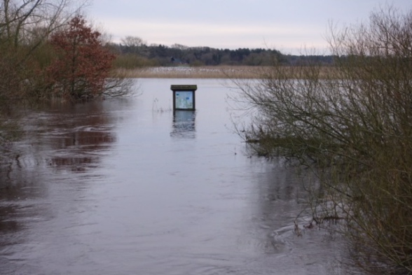 Heute bei Sandbostel südlich von Bremervörde: Die Oste ist weit über ihre Ufer getreten und eifert in diesen Tagen spektakulär dem breiten Unterlauf bei der Mündung nach. Weitere Fotos von Claus List auf dessen Facebook-Seite.