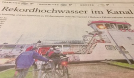Zeitweise wurden in den letzten Tagen zwecks Absenkung des Wasserspiegels sämtliche Kanalschleusen in Brunsbüttel und Kiel geöffnet, so dass die Schiffschleusungen vorübergehend eingestellt werden mussten. Nach dem Ausfall von Schöpfwerkpumpen im Einzugsbereich der Stör hat sich auch dort der Wassernotstand der Landwirtschaft verschärft. In Dithmarschen und in der Wilstermarsch ist die Rosenkohlernte auf den überschwemmten Feldern nur unter Schwierigkeiten möglich (Fotos: J. Bölsche).
