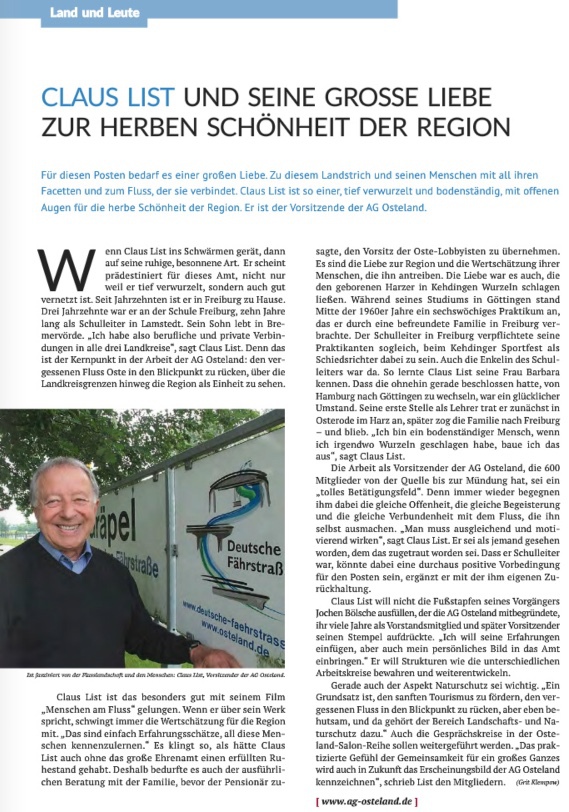 3. 1. 2018. „Leben zwischen Elbe und Oste – Menschen, Landschaft, Kultur und Wirtschaft in der Region Kehdingen und Oste“ lautet, wie berichtet, der Titel der jüngsten Neuerscheinung im MCE Verlag aus Drochtersen. Reich bebildert und mit vielen Informationen wird das Dreieck zwischen den beiden Flüssen dargestellt. Herausgeber und Autor Peter von Allwörden ein buntes Kompendium zusammengestellt, das für Einheimische ebenso interessant ist wie für Ausflügler und Touristen, die Kehdingen und das Osteland kennenlernen wollen. Unsere Abbildung zeigt ein Porträt des Osteland-Vorsitzenden Claus List. Wer in das Buch hineinschnuppern will - bitteschön. In der virtuellen Version kann man jetzt hier blättern.