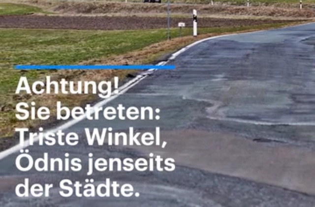 31. 12. 2017. „Erst schließt die Grundschule, dann die Post und das Krankenhaus. Die Folgen: Zumindest die jungen Leute wandern ab. Die Zurückgebliebenen fühlen sich perspektivlos und vom Staat alleingelassen." Außerordentlich lesenswert: Der Deutschlandfunk über die Notlage des abgelegenen ländlichen Raums - vieles lässt sich auf Teile unseres Ostelandes übertragen. Mehr zum Thema auf unserer Seite LANDWUT - LANDMUT.