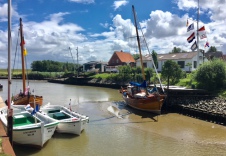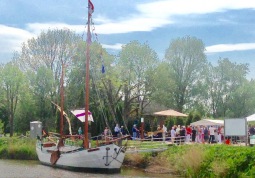7. 7. 2017. Hafenfest auf Krautsand. Am Sonntag, 9. Juli, ab 11 Uhr findet im alten Hafen auf Krautsand wieder ein Hafenfest. Es spielt die Hemmoorer Spinnradgruppe. Wie in den Vorjahren (Foto: Bölsche) gibt es Bratwurst, Fischbrötchen, Kaffee und Kuchen. Im Mittelpunkt des Festes steht der liebevoll restaurierte Elbewer "Catharina", der seit 2013 im Krautsander Hafen vor Anker liegt (mehr).