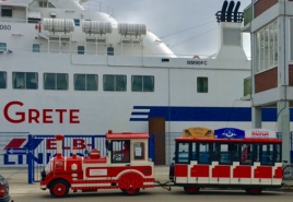 1. 7. 2007. Reederei zuversichtlich. Die jüngste Fähre an der Deutschen Fährstraße Bremervörde - Kiel verzeichnet zunehmende Fahrgastzahlen: Die seit Ende Mai zwischen Cuxhaven und Brunsbüttel pendelnde "Grete" ist ebenso stark ausgelastet wie zuvor die beiden Fähren zusammen. Im Schnitt wurden pro Tag 1100 Passagiere befördert - Anlass für die Reederei, ihren Kunden zu danken. > FÄHRSTRASSE