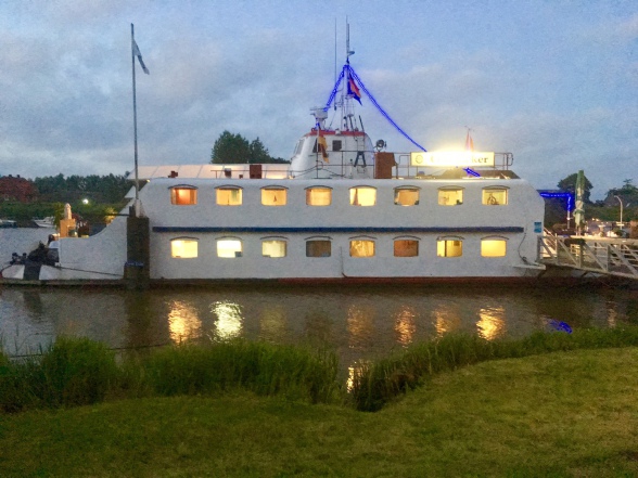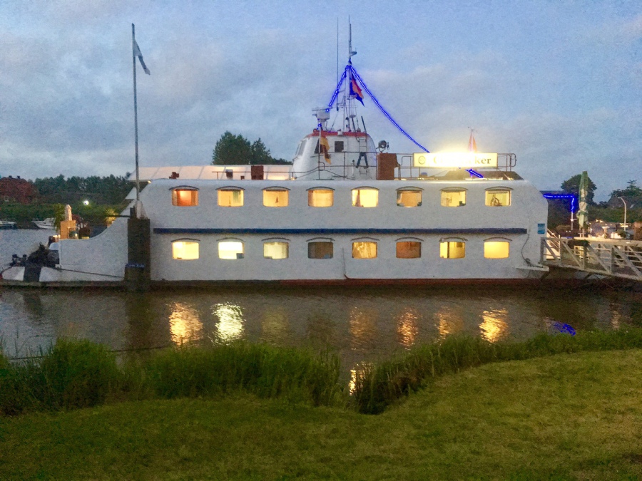 2. 7. 2017. Am heutigen Sonntag veranstaltete der Alfa-Romeo-Club Bremen/Oldenburg eine Ausfahrt ins Osteland mit dem Titel "Die vier Fähren an der Oste". Ziel der Fahrt auf einem besonders reizvollen Teilstück der Deutschen Fährstraße war das Restaurantschiff "Ostekieker" in Oberndorf, eine ehemalige Ostsee-Fähre (Foto: Bölsche). Zuvor waren die Fähren in Gräpel, Brobergen und Osten (mit Besuch des Buddelmuseums) angesteuert worden.