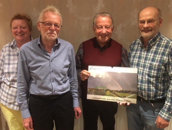 16. 7. 2017. Große Freude bei den Mitgliedern des geschäftsführenden Vorstandes der Arbeitsgemeinschaft Osteland (v. l. n. r. Renate Bölsche, Ewald Romund, Claus List und Walter Rademacher): Der neue Benefiz-Großkalender "Lieblingsbilder aus dem Osteland 2018" ist da! Bericht und alle Fotos unter > KALENDER 2018