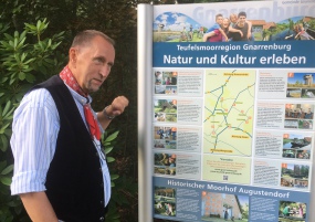 17. 7. 2017. Moor-Pfade an der Oste. Der bekannte Moorerlebnispfad im Huvenhopsmoor bei Gnarrenburg, unweit der Oste, wird durch einen zweiten Abschnitt ergänzt, der zurzeit am Historischen Moorhof Augustendorf entsteht, wie der Vorsitzende des Heimatvereins sowie des Touristikvereins, Ulrich Hartmann (Foto), mitteilt. Mehr > GOLDENES NETZ OSTE