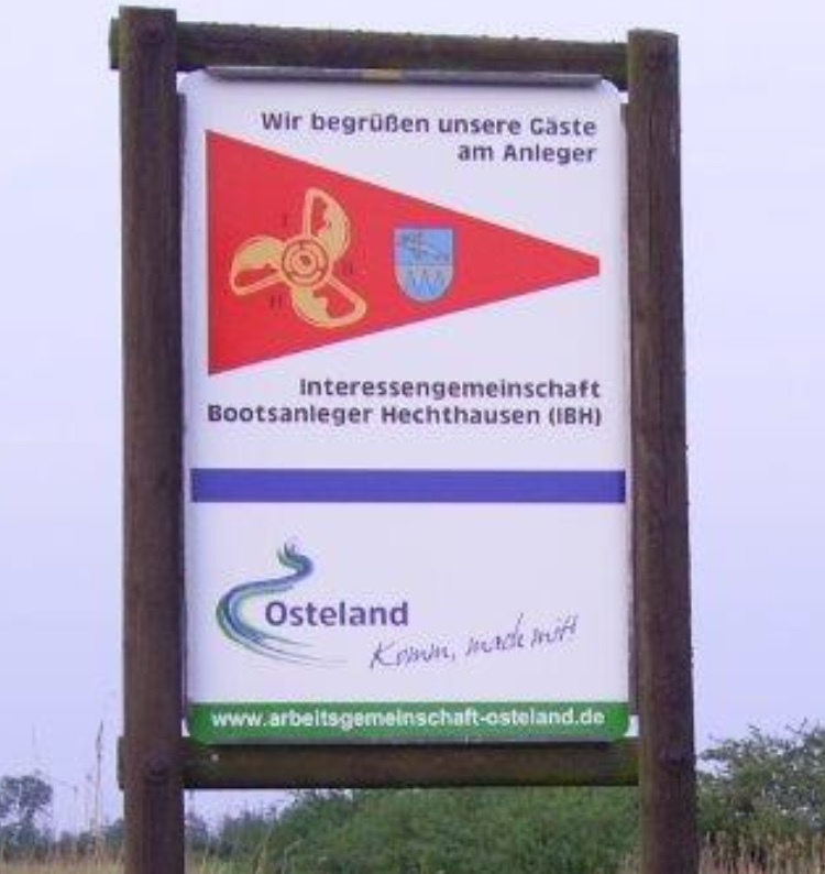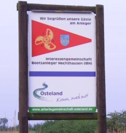 6. 6. 2019. Mit einem neuen Begrüßungsschild heißen die Interessengemeinschaft Bootsanleger Hechthausen (IBH) und die Arbeitsgemeinschaft Osteland Wassersportler auf der Oste willkommen. Die AG Osteland ist Trägerin der Deutschen Fährstraße, deren „Blaue Route“ den Sportboothafen in Bremervörde über Oste, Elbe und Nord-Ostsee-Kanal mit der Kieler Förde verbindet. - Dank für Hinweise und Foto an Gerhard Reibe. Mehr zum Thema > BLAUES NETZ OSTE