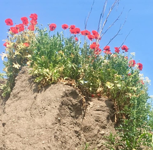 Wilder Mohn und andere Wildkräuter auf der Erddeponie eines Bauunternehmens in Osterbruch-Norderende lassen ahnen, wie bunt die Sommer früher einmal waren.