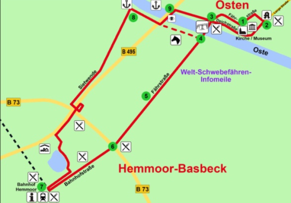 die Etappenziele an der Deutschen Fährstraße, unter anderem die historische Oste-Fähre in