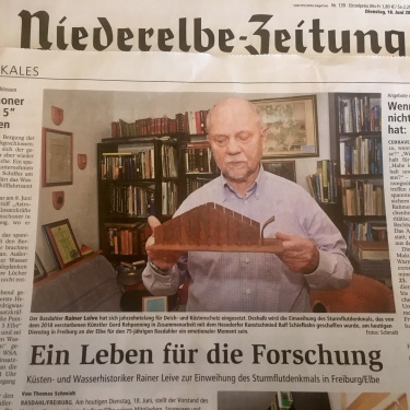 18. 6. 2019. Nach der Bremervörder Zeitung veröffentlicht heute auch die Niederelbe-Zeitung einen großen Bericht von Redakteur Thomas Schmidt über den Küstenforscher und Osteland-Kulturpreisträger Rainer Leive aus Basdahl (Laudatio auf Leive). Der Privatgelehrte hat nicht nur mit seinen Forschungsarbeiten zu dem legendären Mumienschiff „Gottfried“ den Cuxhavener Autor Reinhold Friedl zu dessen Oste-Krimi „Tödliche Schriftrollen vom Nil“ inspiriert.