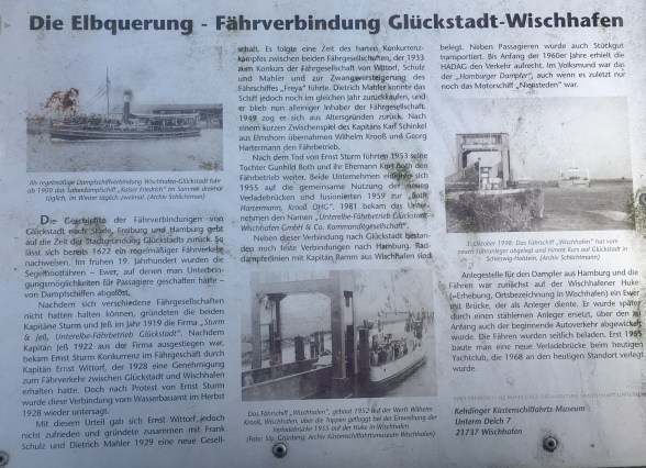 Foto unten: Info-Tafel zur Fährgeschichte am Wischhafener Fährkopf.