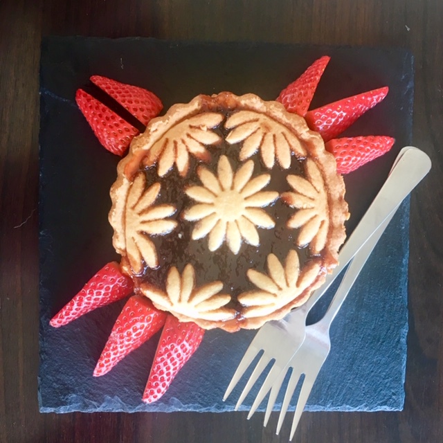 Erdbeer-Törtchen mit frisch gebrühtem Kaffee.