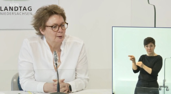15. 3. 2021. Die aus dem Cuxland stammende neue niedersächsische Gesundheitsministerin Daniela Behrens (SPD) hat vor der Presse das weitere Vorgehen bei der Corona-Impfkampagne konkretisiert (Foto). In Kürze sind demnach die Über-70-Jährigen an der Reihe.