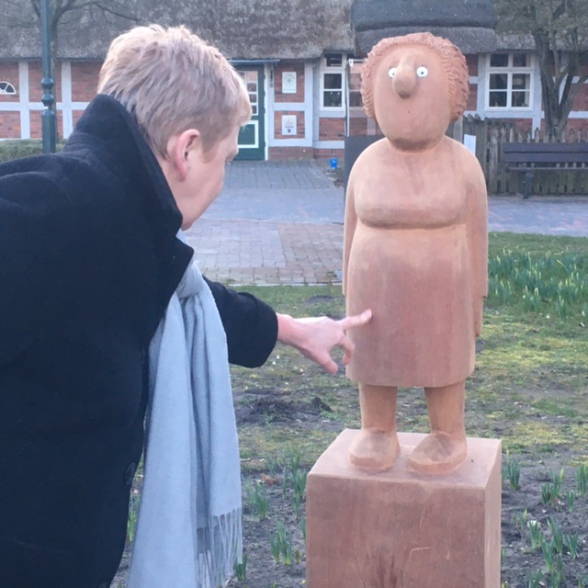 19. 3. 2021. Der knollennasige Bremervörder „Seemann“ - beliebte Skulptur des Krautsander Künstlers Jonas Kötz im Vörder See - hat jetzt eine Gefährtin: Hundert Meter weiter, am „Haus am See“, wurde auf Initiative Bremervörder Ortsratsmitglieder eine Kötz‘sche „Seefrau“ aufgestellt - mit Dutt und ebenfalls mit Knollennase (Foto: Bölsche).
