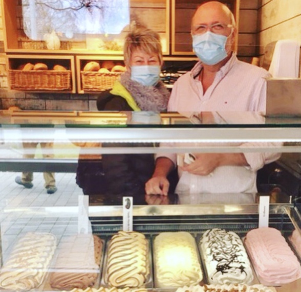 20. 3. 2021. Premiere in der „Alten Tischlerei“ von Manja und Heiko Schröder in der Wingst: Pünktlich zum Frühlingsanfang am heutigen Sonnabend gingen um 10.55 Uhr die ersten Eiskugeln der Saison (Vanille-Marille-Schoko) über den Tresen des neuen Back-Cafés (Foto: R. Bölsche).