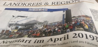 14. 11. 2018. Gibt es vom kommenden Jahr an eine weitere Fährverbindung an der Deutschen Fährstraße Bremervörde - Brunsbüttel - Kiel? In das Thema Elbe-Fähren kommt Bewegung: Im hannoverschen Landtag haben sich alle Parteien außer der FDP für eine Wiederbelebung der Verbindung Cuxhaven - Brunsbüttel eingesetzt (ausführlicher Bericht). Zugleich berichtet die Regionalpresse über konkrete Pläne des Unternehmensberaters und ehemaligen Cuxport-Chefs Heinrich Ahlers, die Verbindung ab April mit neuen Schiffen zu bedienen (kl. Foto: NEZ-Artikel).