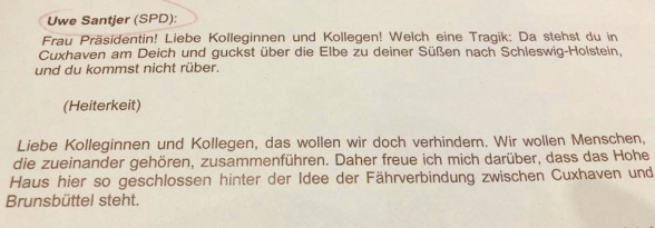 SPD-Abgeordneter Uwe Santjer im Niedersächsischen Landtag zum Thema Elbe-Fähren: