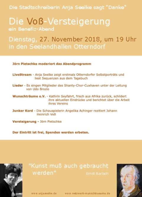 Schülertalente vom Otterndorfer Gymnasium, das Programm mit einer Reziation von Voß-Texten bereichern. Doch die Gäste erwartet auch noch ein weiteres Debüt. Eigens für diesen Abend präsentiert Anja
