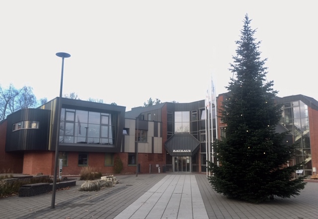 "Viel zu schön, um in der Kirche zu verstecken“ - das war in Oberndorf des allgemeine Urteil über den rund 8 Meter hohen Riesenbaum, der nun seinen Platz vor dem Gotteshaus gefunden hat. Der „Baum wie aus dem Bilderbuch“ (NEZ) ist „bei uns in Oberndorf gewachsen“, freut sich Bürgermeister Detlef Horeis. Die Prachttanne wurde von der Familie Thomas Schütt aus der Kurt-Engmann-Straße gestiftet (Foto: Bölsche).