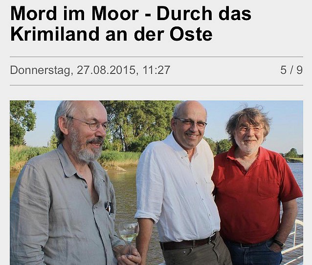 28. 8. 2015. Krimiherbst. Die Fans der Krimis aus der Region können sich auf den Bücherherbst freuen, für den Bücher von drei Ostepreisträgern angekündigt sind: Dietrich Alsdorf, Thomas B. Morgenstern und Wolfgang Röhl. Damit spielen 55 Krimis in der Region Kehdingen-Oste. Mehr > KRIMILAND