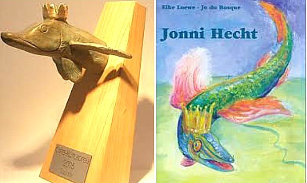 16. 9. 2015. Jonni in Oberndorf. Der Hecht mit der goldenen Krone schmückt Wappen und Brunnen in Hechthausen, ist Namensgeber des Oste-Kulturpreises und Held des Buchs "Jonni Hecht", dem wiederum ein Marionettenstück gewidmet ist - demnächst zu sehen in Oberndorf. > GOLDENES NETZ