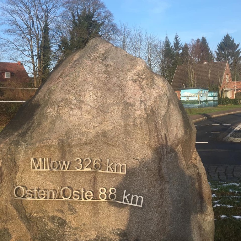 12. 10. 2020. Der 2005 konzipierte Historische Fährweg Osten - Basbeck - Osten hat soeben zwei neue Anlaufpunkte erhalten: Unterhalb der Ostebrücke, unweit des Wasserfreunde-Clubhauses, informiert jetzt eine Tafel über die Geschichte der „Blauen Brücke“ im Zuge der B 495.